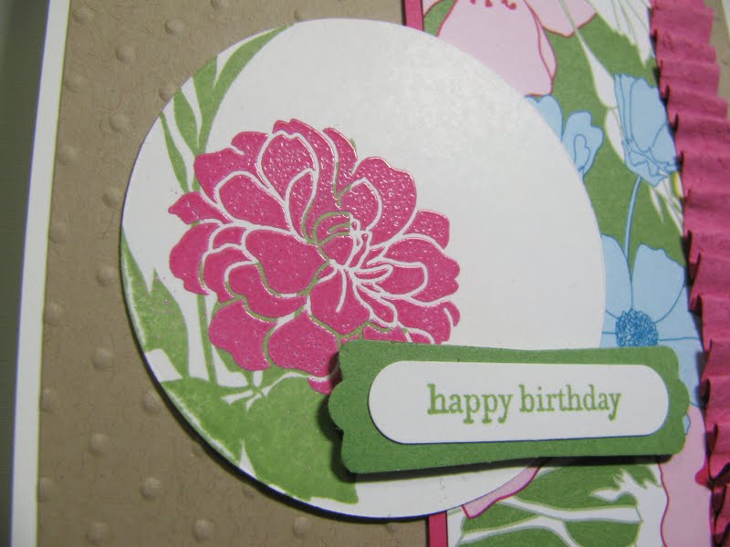 That strip on the right is the faux suede part. I ruffled it up like ribbon for this card, but you can punch out different shapes and use the technique that way as well. I think it’s cute.