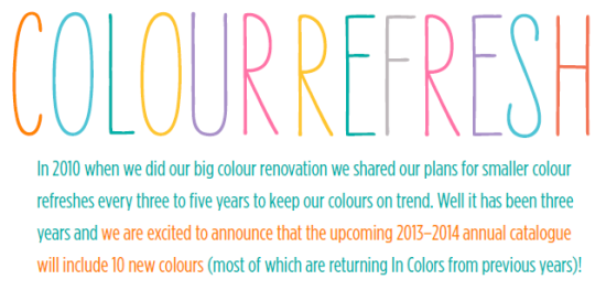 With the upcoming Colour Refresh are you going to miss some of your favourites that are discontinuing? Beginning immediately, all retiring/discontinued colour products (ie. ink, paper, ribbon, accessories, etc) will be available only while supplies last, and with FREE shipping April 6-8th (Sat, Sun, Mon) now is the time to stock up!