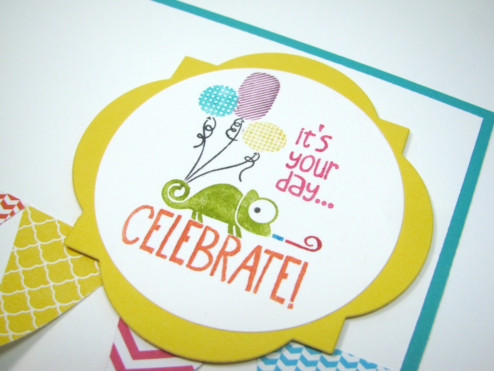 Today’s card is another swap that I’ll be sharing with my fellow demos at Stampin’ Up! Convention. It’s another one featuring the Tag It stamp set. I think the little lizard is just adorable!