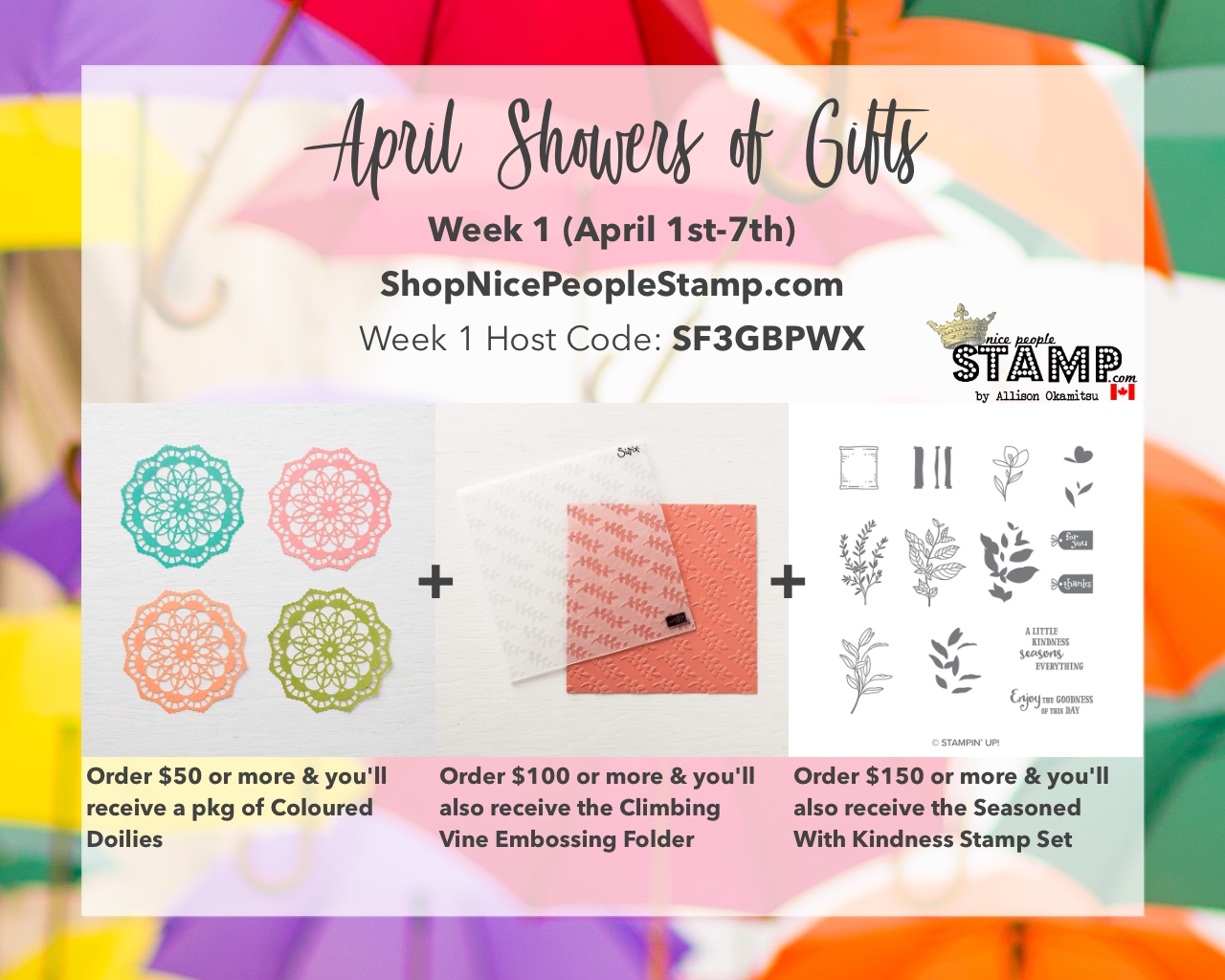 If you have decided that joining isn’t for you right now, you can purchase these items in my Canadian Online Stampin’ Up! Store today! AND you can take advantage of my April Showers of Gifts promotion!