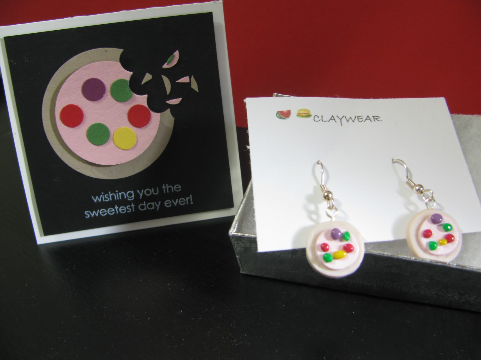 I am so pleased with this little gift set! A few weekends ago when I had a table at the New Brighton Craft Fair I met a lovely lady named Suzanne, who makes this ADORABLE jewelry out of clay. Being a pastry chef, I couldn’t resist the little sugar cookie earrings! Truth be told, I bought all the stock she had…I do have a few people on my Christmas list this year that I think will really love them too, they’re not ALL for me! Soooo…no gift is complete without a matching card, so I took some time to make a little sugar cookie out of punches to match the ones in the jewelry. How cute! The sentiment is from the Something Sweet stamp set.