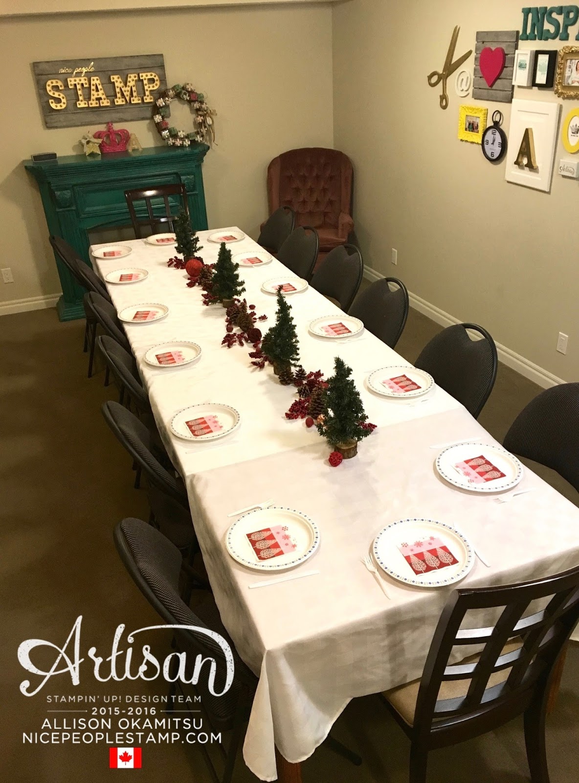 Hello my friends! I have a very special post for you today. In mid December I invited my local Stampin’ Up! team members over for a holiday dinner party and gift exchange. We also had some of the gals from across Canada join us via Facebook Live. It was a truly memorable evening.