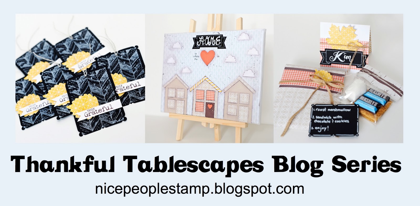 Today’s Thankful Tablescape Kit project is a little gift package and card. I packaged mine as a miniature s’mores kit, but you could use it to package anything. With the supplies that come in the Thankful Tablescape Kit you’d be able to make 10 of these projects for your friends or family (with a couple of extras listed below).